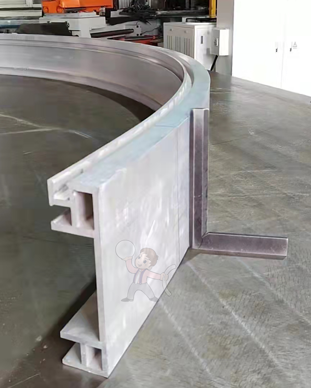 其拉彎件組成主要包括:大帽頭、掛輪等,由于截面尺寸比較大,槽口復雜,拉彎過程中需要嚴格控制公差范圍,保證安裝后滑動自由、無異響。