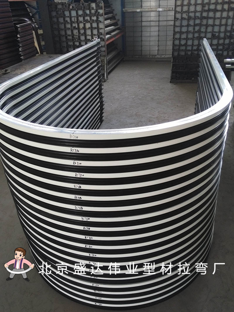 2、 北京盛達(dá)偉業(yè)型材拉彎廠在十余年的工作經(jīng)驗(yàn)中,深入研究,逐步探索,對機(jī)械設(shè)備和工裝夾具進(jìn)行了全面的改造和升級,使斷橋鋁型材的最小彎弧半徑達(dá)到了R=260mm,而且專研完成了斷橋鋁型材半圓形彎弧部分與兩端直線段部分的一體化加工,使得整體窗型(門型)工藝簡化,造型美觀大氣,效率提升,質(zhì)量一流,精度準(zhǔn)確,技術(shù)尖端,增加點(diǎn)成本,提升了效率和美觀度. 獲得了客戶的廣泛好評。