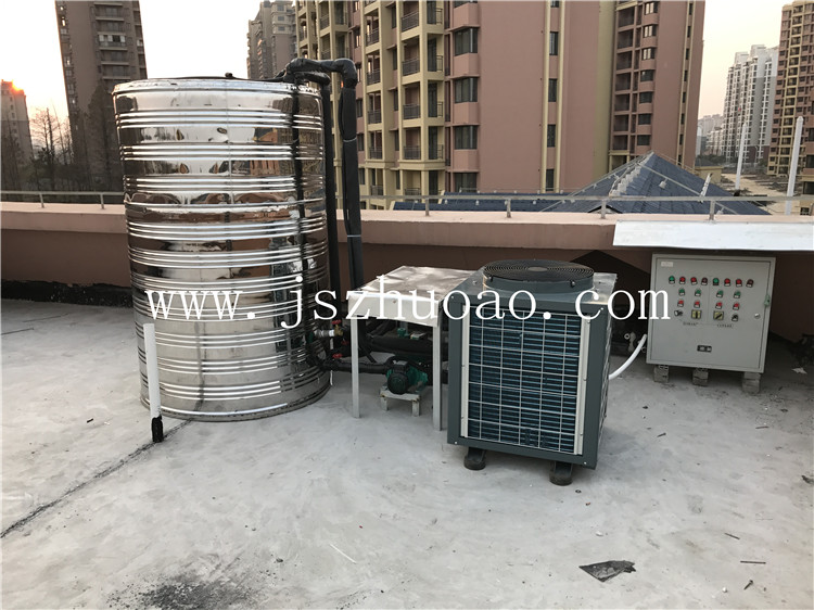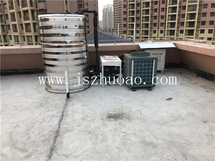 工程介紹:一臺3匹商用空氣能主機,一臺1噸保溫水箱